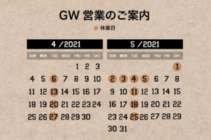 いつもご利用いただき、ありがとうございます。 本日はゴールデンウイークの営業のお知らせです。 ...